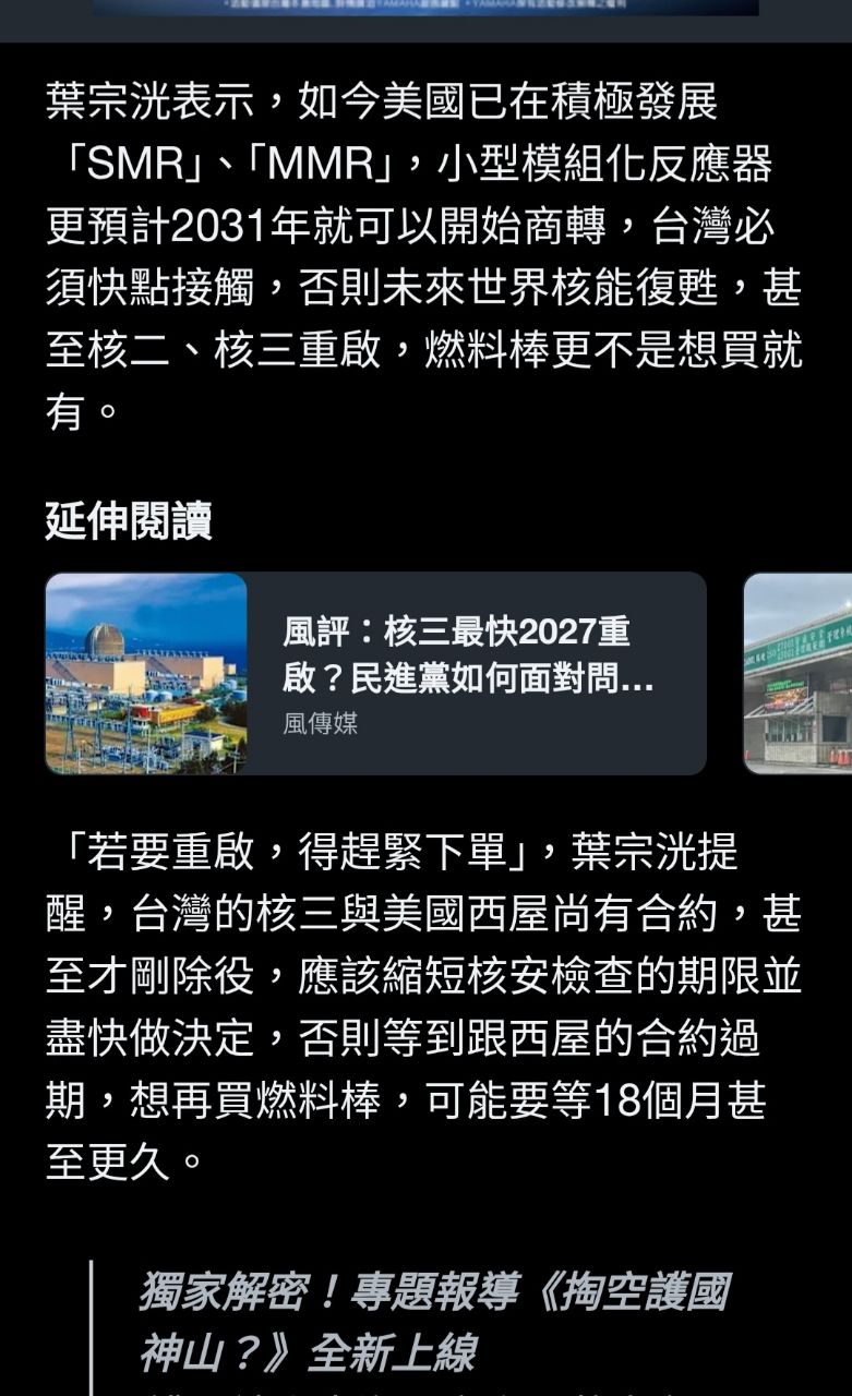 标题[新闻]核三厂有望2028年重启 卓荣泰:「非核家