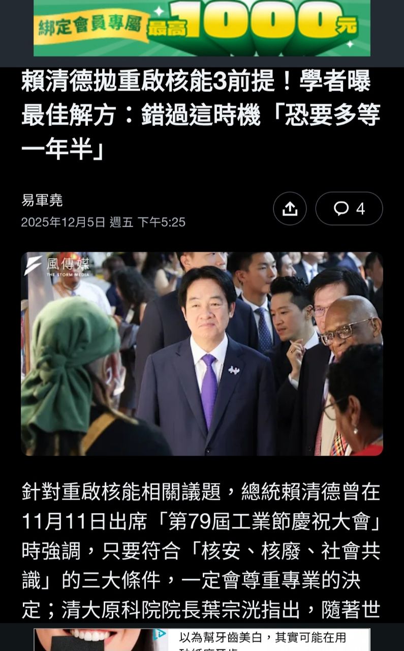 但赖清德总统正在推动发展多元绿能的二次能源转型,这和非核家园并不排斥。