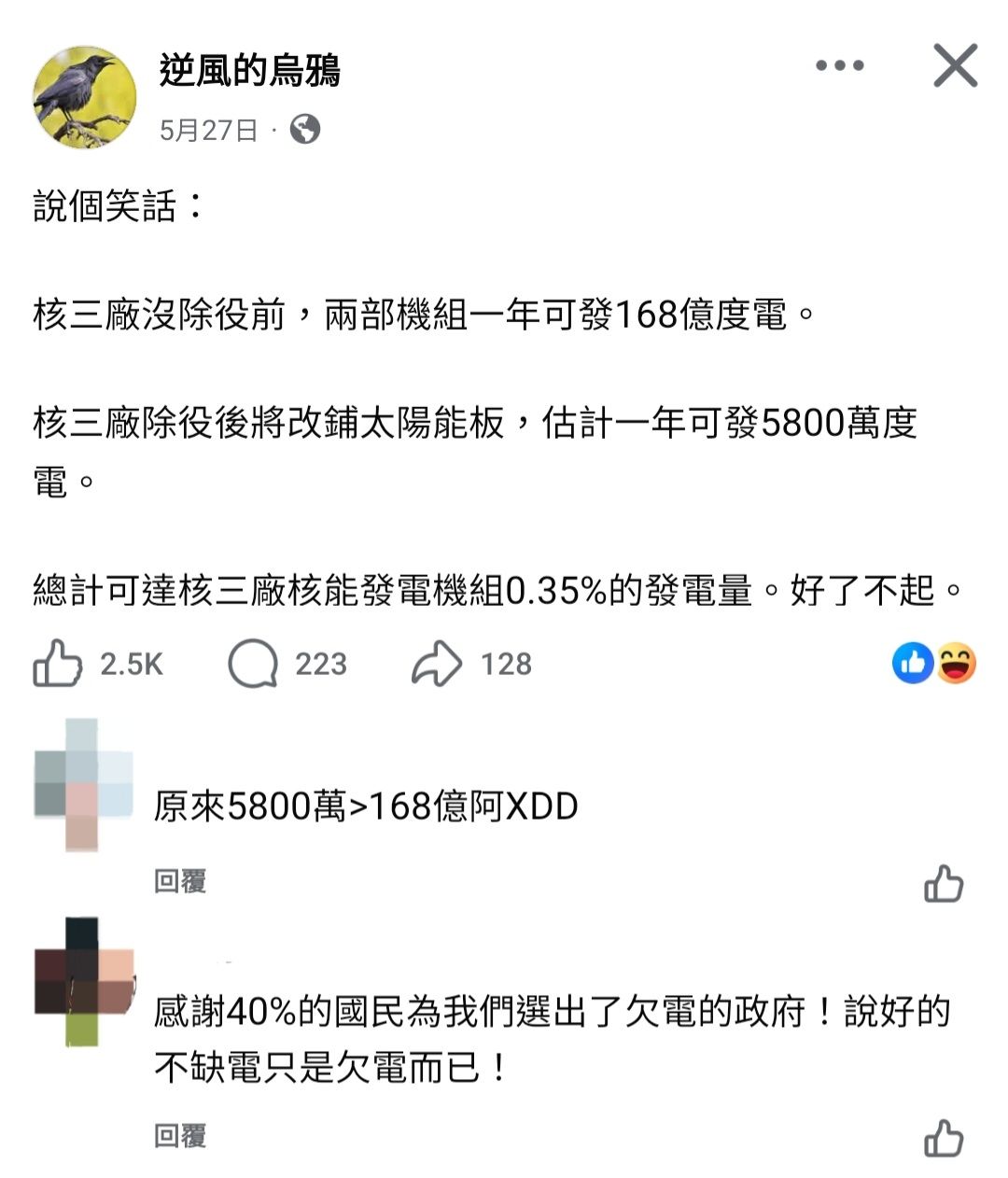42F:嘘 YOYOBOY: 5月才刚停核三 重启要等到2028 笑死人塔 39.12.42.195 12/05 23:02