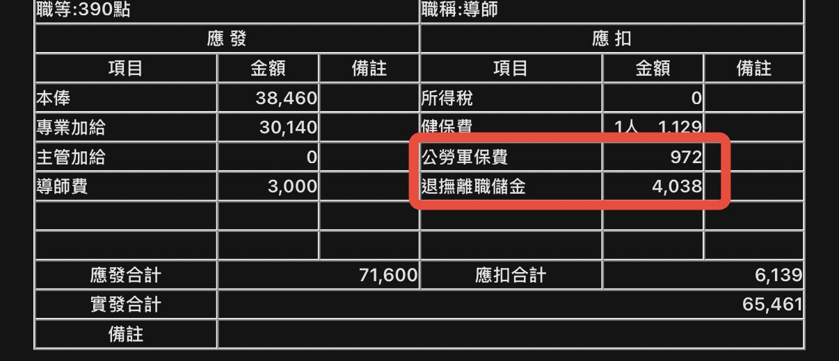 177F:推 Mieke: 我公保加退抚每个月缴6000多 42.71.217.174 12/14 07:29