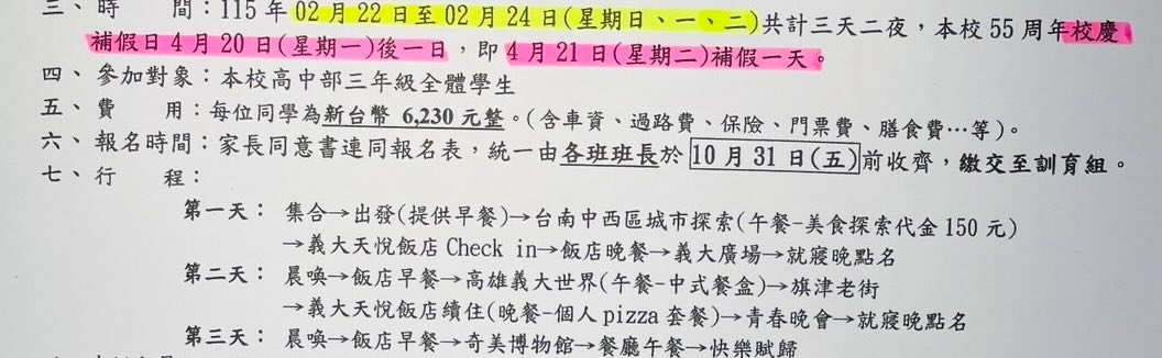 : 来只要看到学生8小时,现在变成要管24小时的秩序,别闹了」、「高中毕旅不去真的无