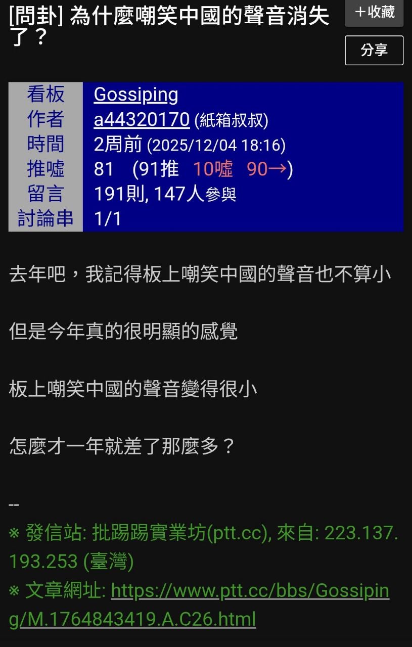 ※ 文章网址: https://webptt.com/cn.aspx?n=bbs/Gossiping/M.1766492174.A.0A1.html