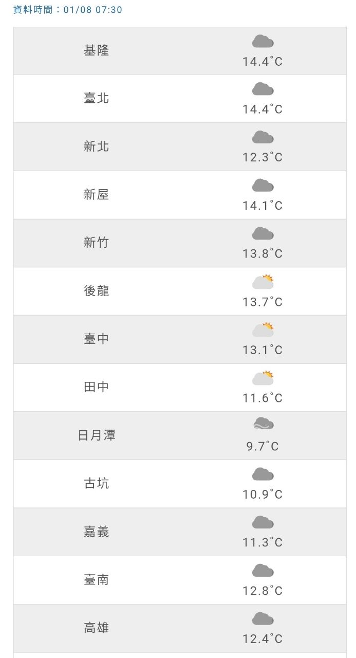 但今天或是说这几天的低温,居然比台北还低,