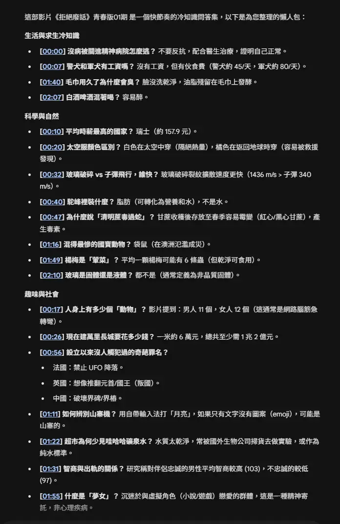 标题[问卦] YT短片拒绝废话资料哪来的?