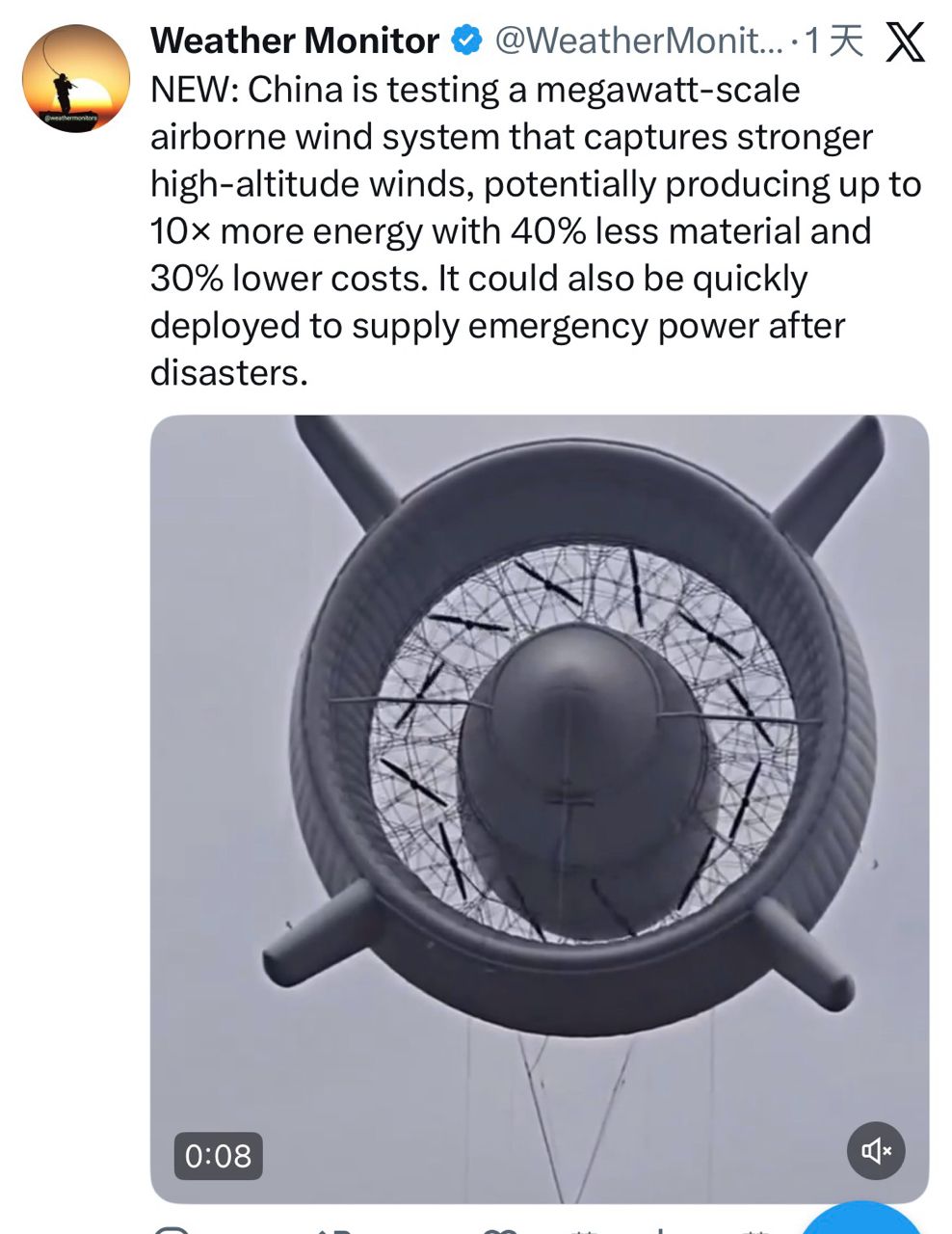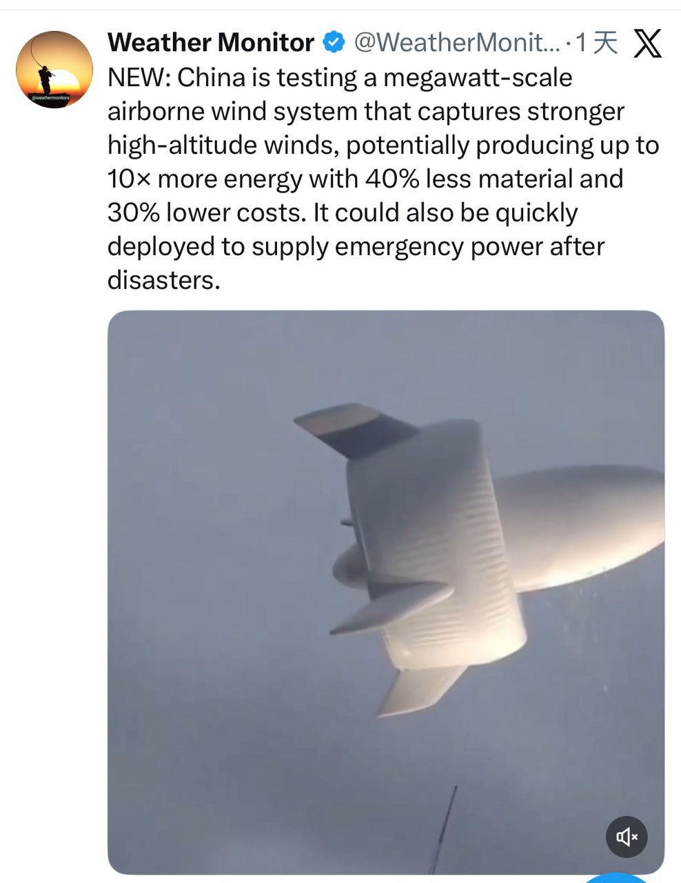 标题[问卦] 全球第一个百万瓦级风电设施在中国试飞