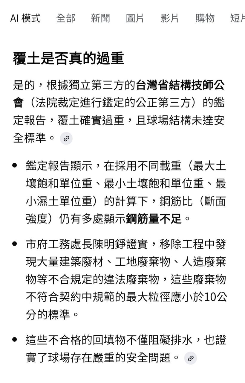 2025年2月19日,由新竹地方法院指定的台湾省结构技师公会出具监定报告,明确指出球场