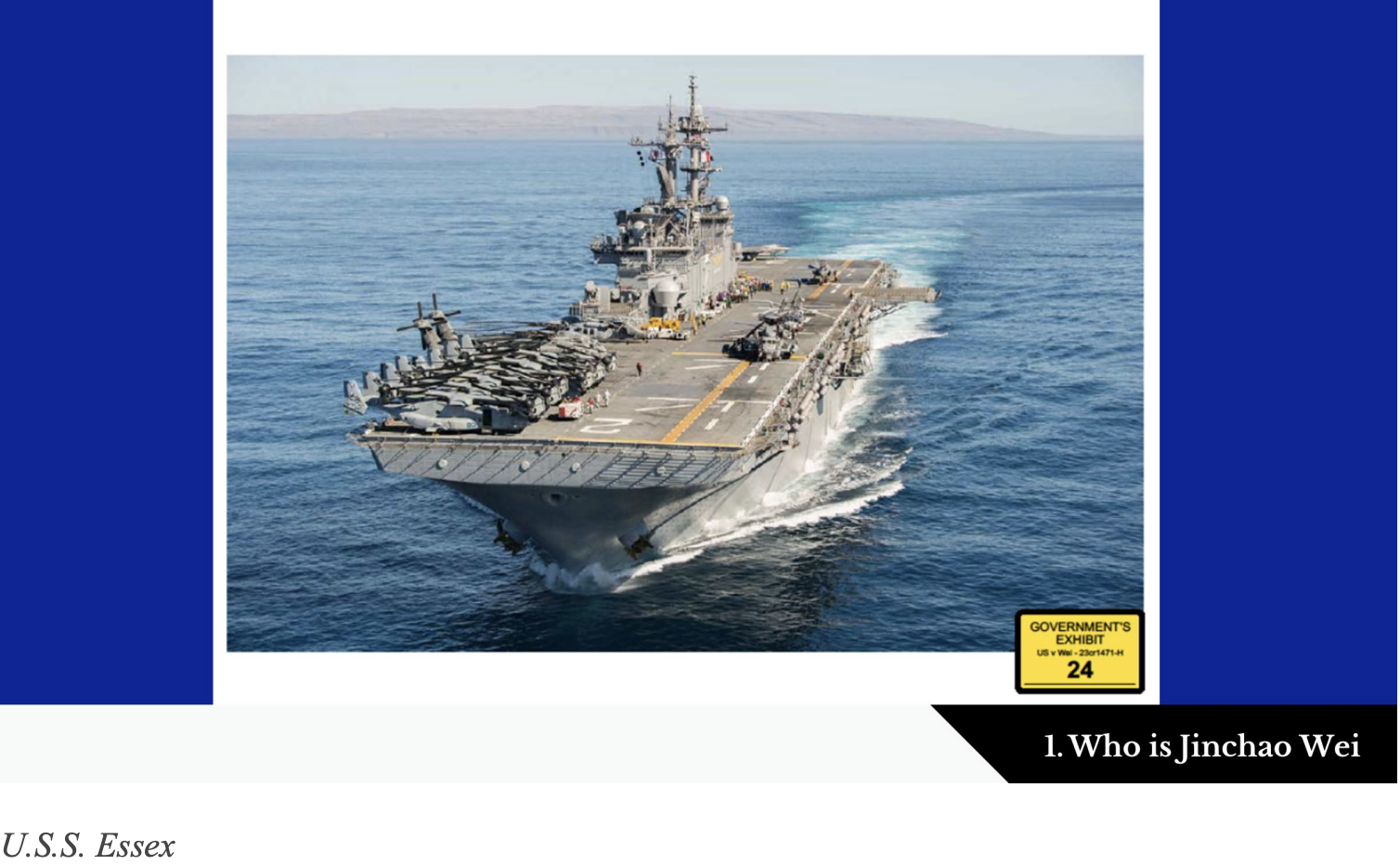 证据表明,魏金超从美国海军内部电脑系统中,窃取了几千页有关「埃塞克斯号」等美国