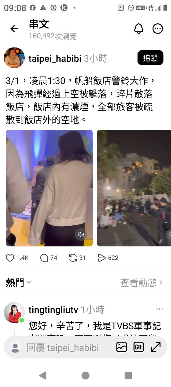杜拜帆船酒店被飞弹碎片打到住客疏散了,看到脆友刚到杜拜住帆船酒店,半夜饭店浓烟