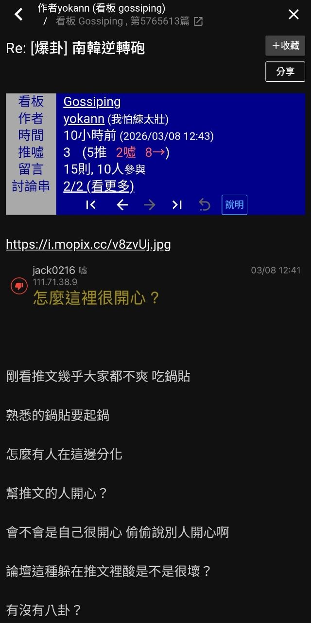 ※ 文章网址: https://webptt.com/cn.aspx?n=bbs/Gossiping/M.1772983695.A.B68.html