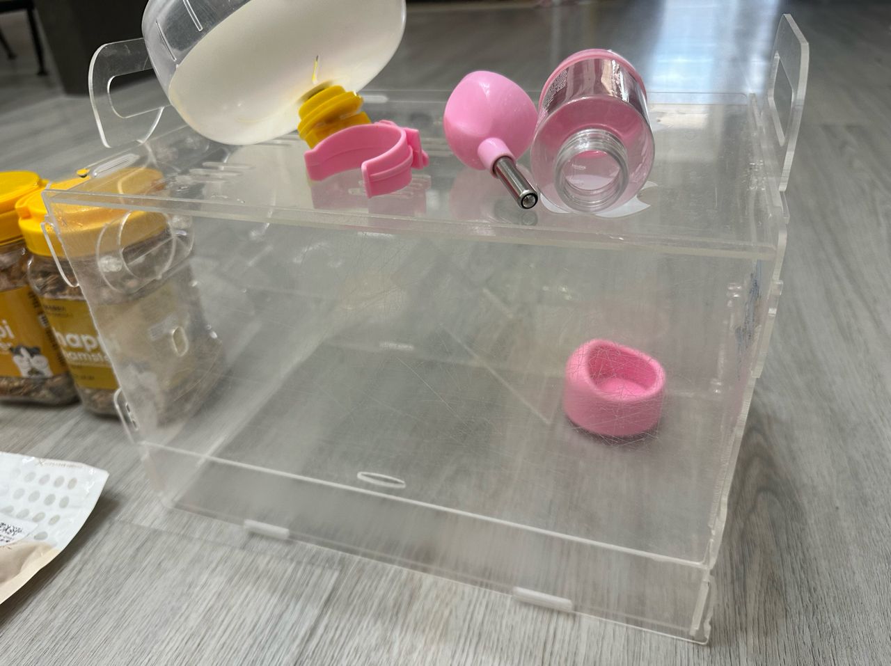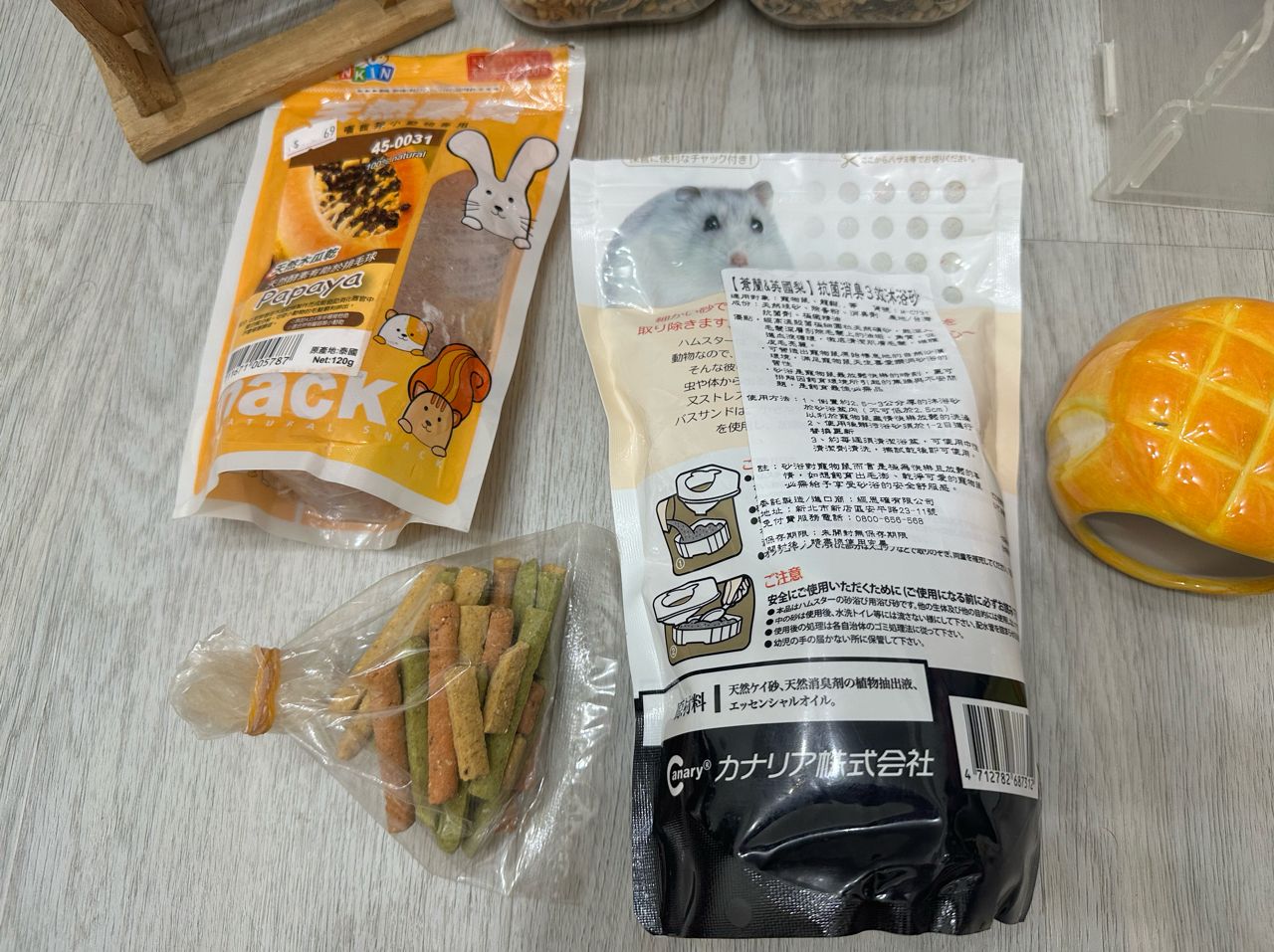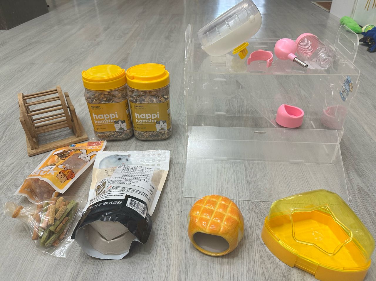 照片看到的全部500出售,不拆售。 饲料两罐都已开封。 果乾与磨牙棒保存期限不详,赠送,介意者可不取。 鼠笼长宽高约30*20*20(公分)。 两边有部分裂痕,但不影响正常使用。 台中南区侨泰高中/兴大附近自取, 可开好卖家运费+39元。