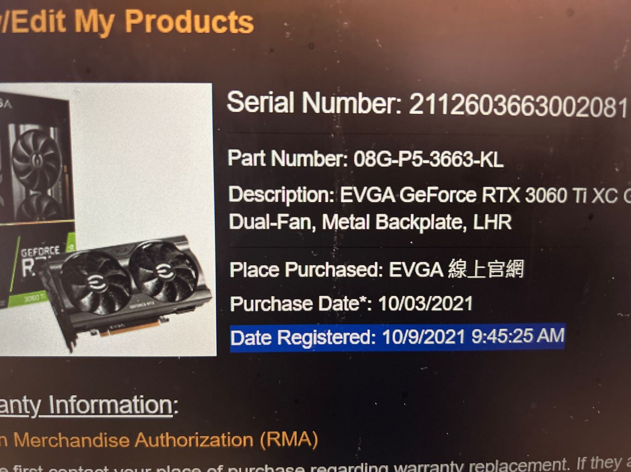 显卡正常使用换下,2021/10/3官网购买,保固内