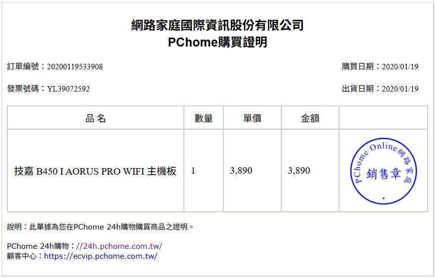 MB: 技嘉 B450 I AORUS PRO WIFI