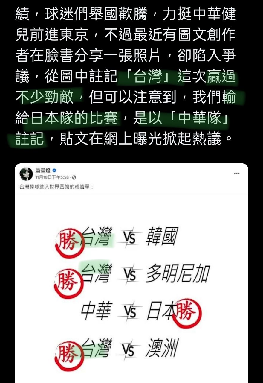 Re: [讨论] 「赢球中华队 输球台湾队」是有起源的