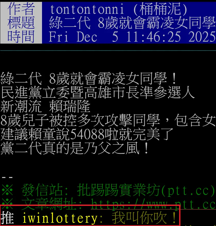 ※ 文章网址: https://webptt.com/cn.aspx?n=bbs/HatePolitics/M.1764990204.A.A81.html