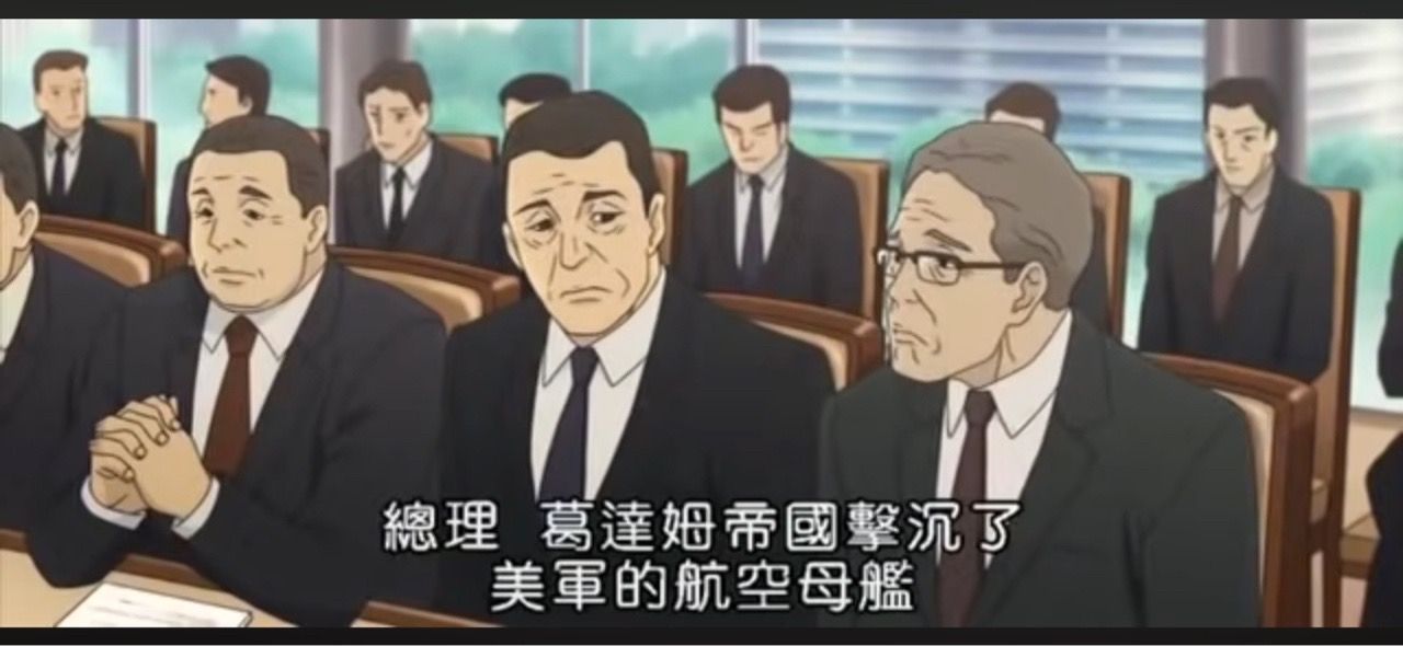 正在讨论着美国的航空母舰被葛达姆帝国击沉