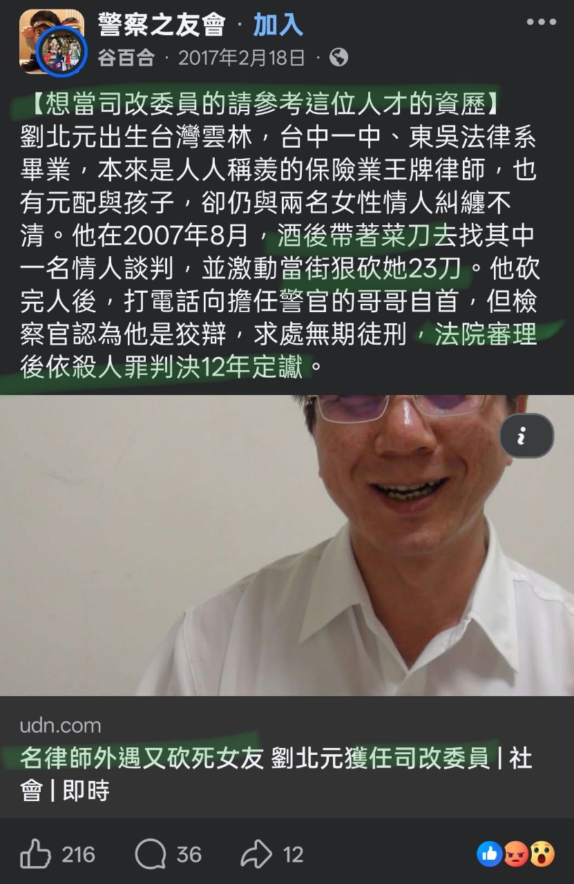 标题[讨论] 民进党执政,当街杀人成为司改委员捷径