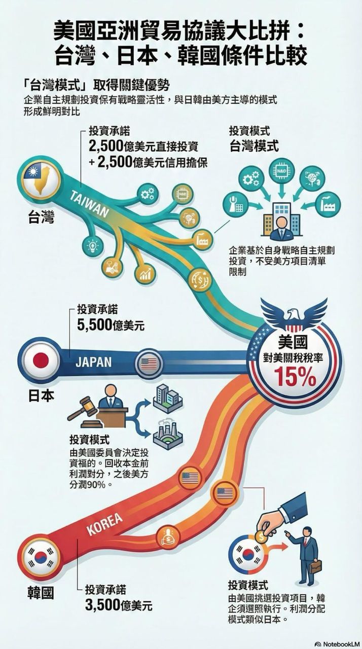 台美关税谈判结束,台湾对等关税取得调降为15%且不叠加的结果,是美国逆差国中最低的