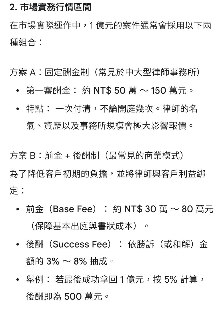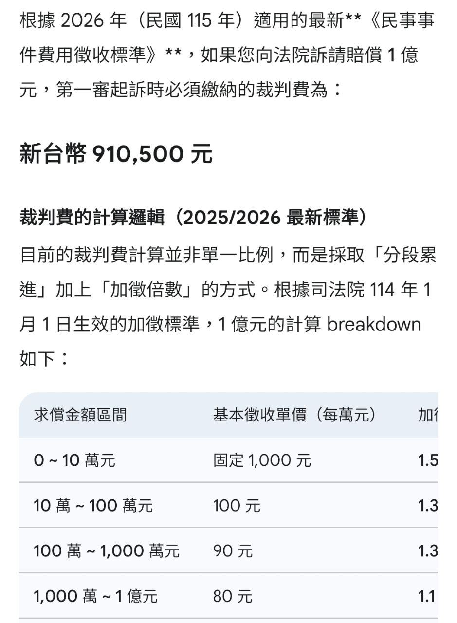 8F:→ benothing: 91万裁判费跟委任律师费用是真的砸下去 150.117.19.77 01/20 00:00