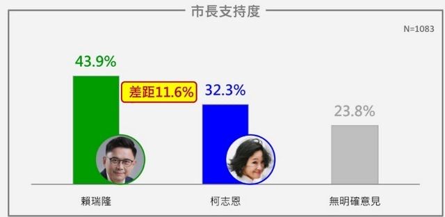 赖瑞隆领先柯志恩11%