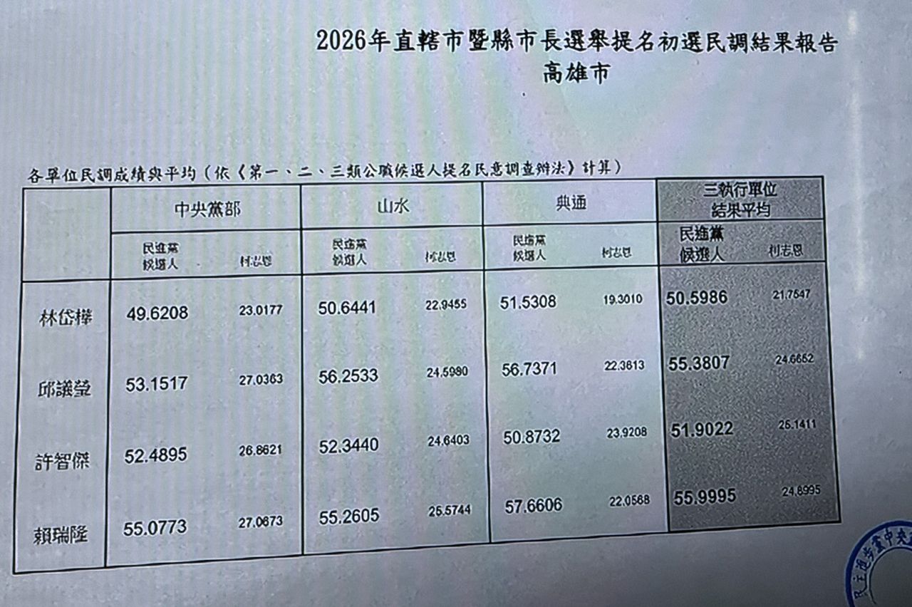 赖瑞隆领先柯志恩30%