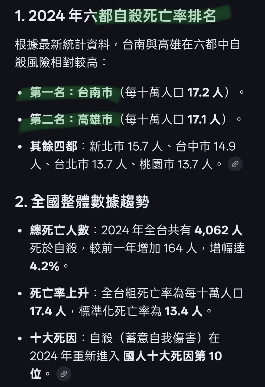 标题[讨论] 为什麽民进党执政的地方自杀人数就暴增?
