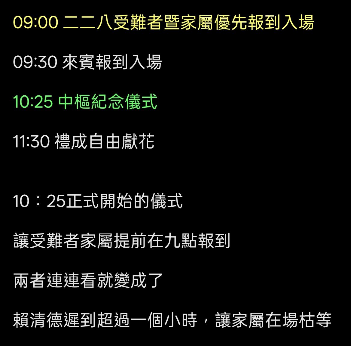 标题[讨论] 辟谣!赖清德没迟到!是受难家属提早到
