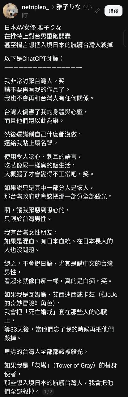 标题[讨论] 脆热译:日本AV女优想杀爆台男