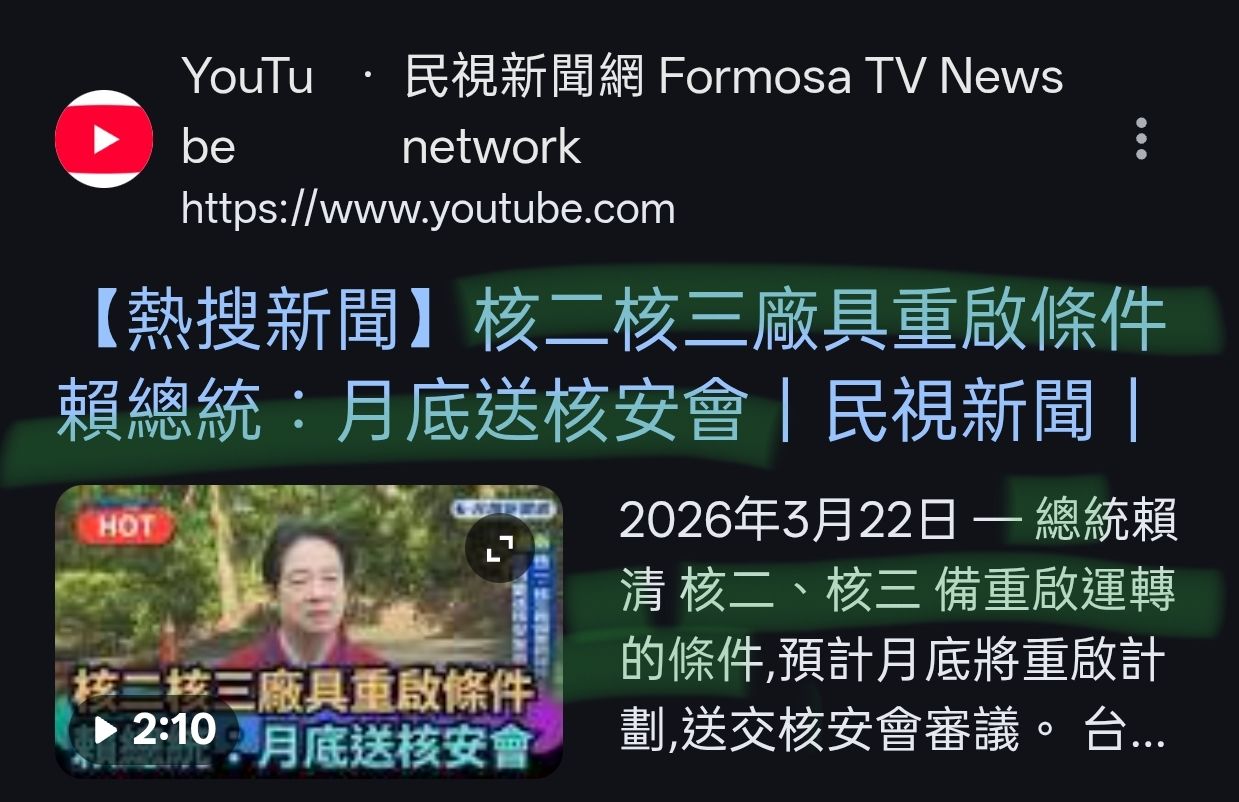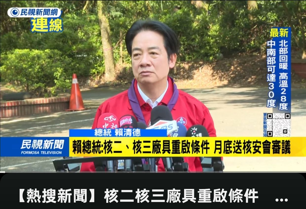 标题[讨论] 赖清德:核二、核三具备重启条件!月底