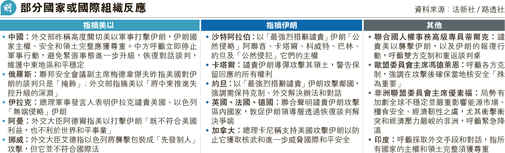 ,但到昨日伊朗反击遍及沙特、阿联酋、卡塔尔、科威特等国後,阿拉伯各国纷谴责伊朗