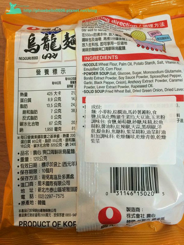 标题[心得] 韩国农心爽口海鲜味乌龙面
