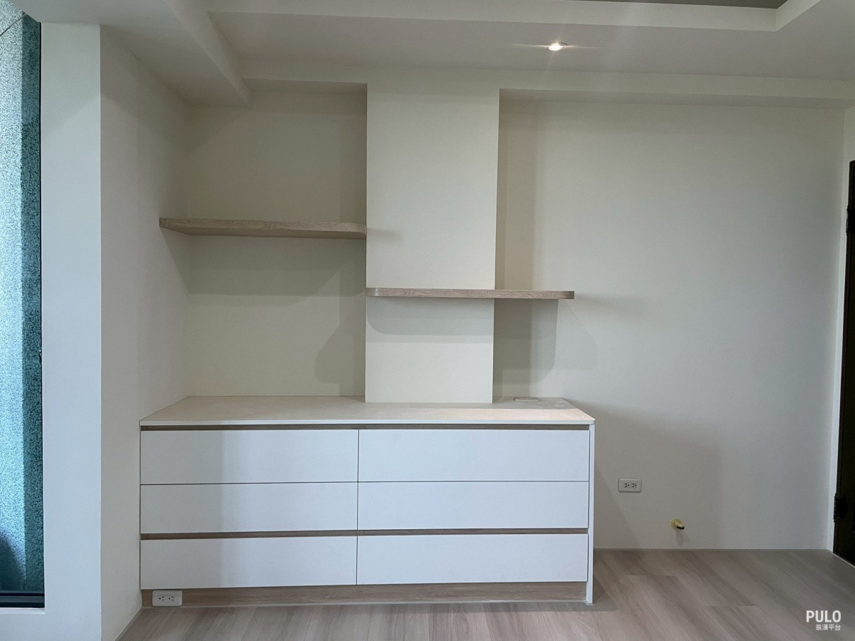 主要改造内容包括增加收纳空间、地板与油漆的更新、以及修补拆除後的痕迹。 统包师傅规划了衣柜、床头柜、书柜等柜体,让收纳量大幅提升。地板部分则换上RHOADA 诺达超耐磨木地板,墙面重新粉刷,整体看起来更舒适明亮。