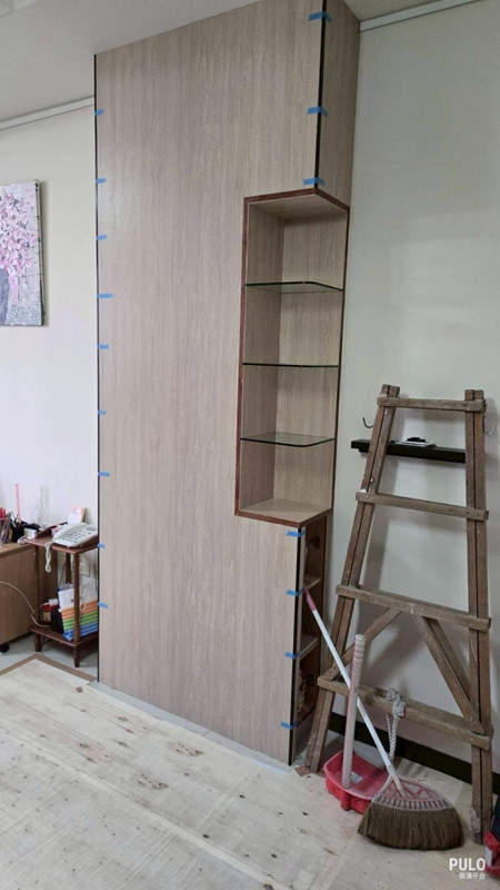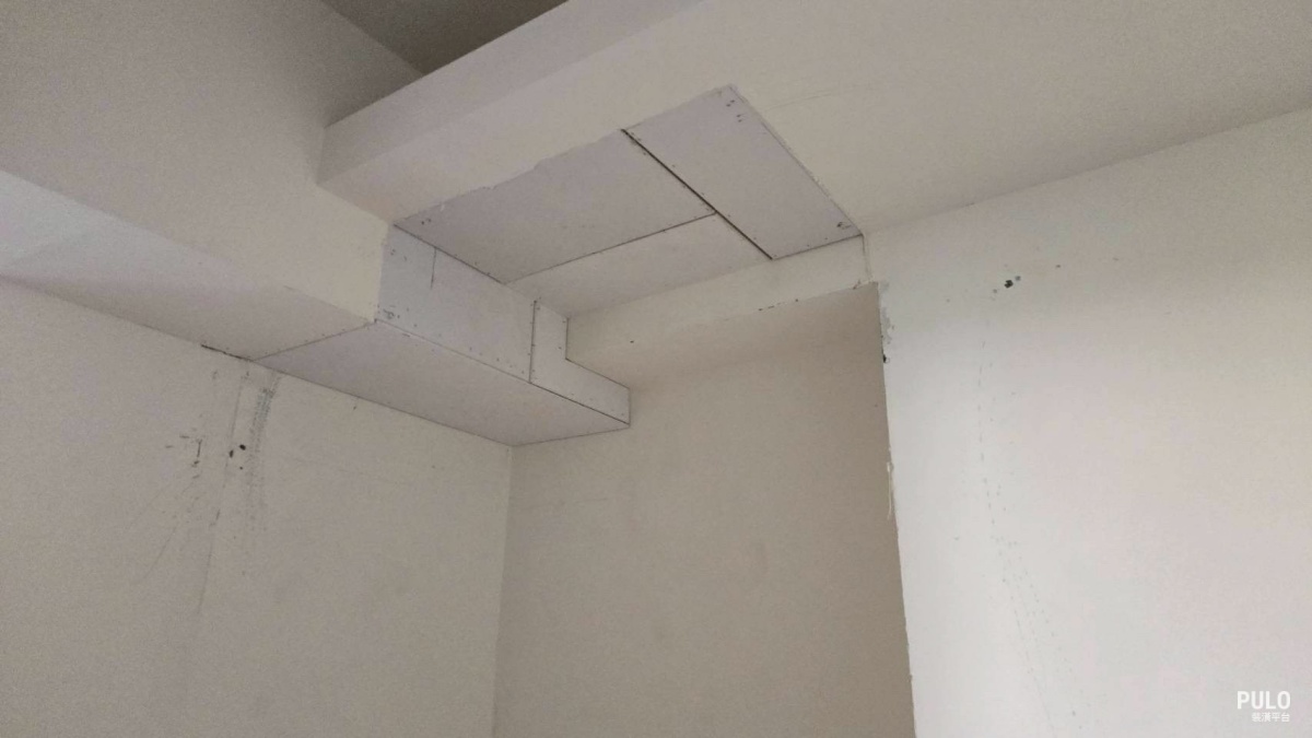 拆除旧柜体後,墙面和天花板会留下一些不平整的地方。师傅用木作封板把这些位置补平 ,让後续的油漆工程能够顺利进行,完工後看不出拆除的痕迹。