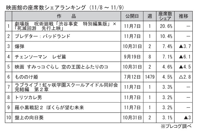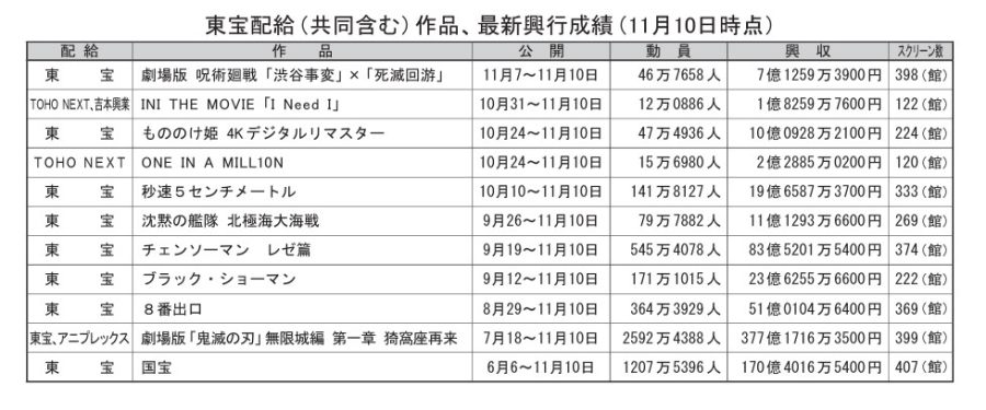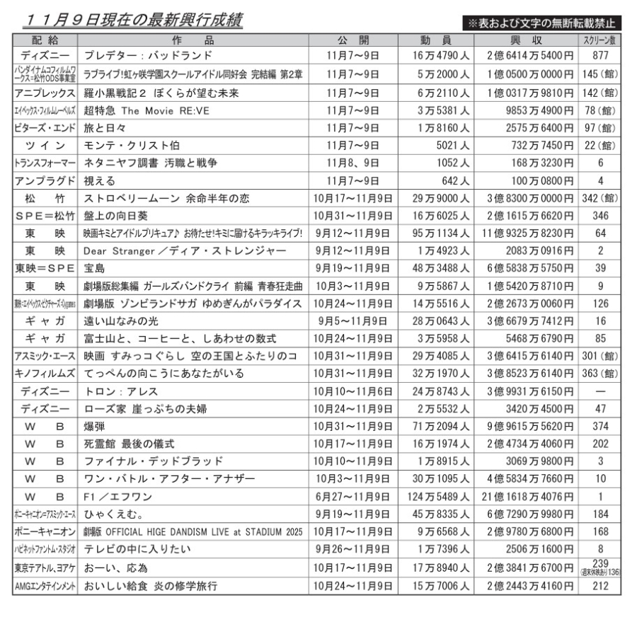 标题[情报] 上周日本电影票房 11/03 ~ 11/09、10