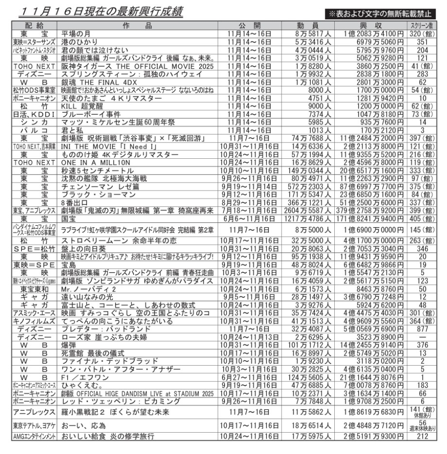 标题[情报] 上周日本电影票房 11/10 ~ 11/16