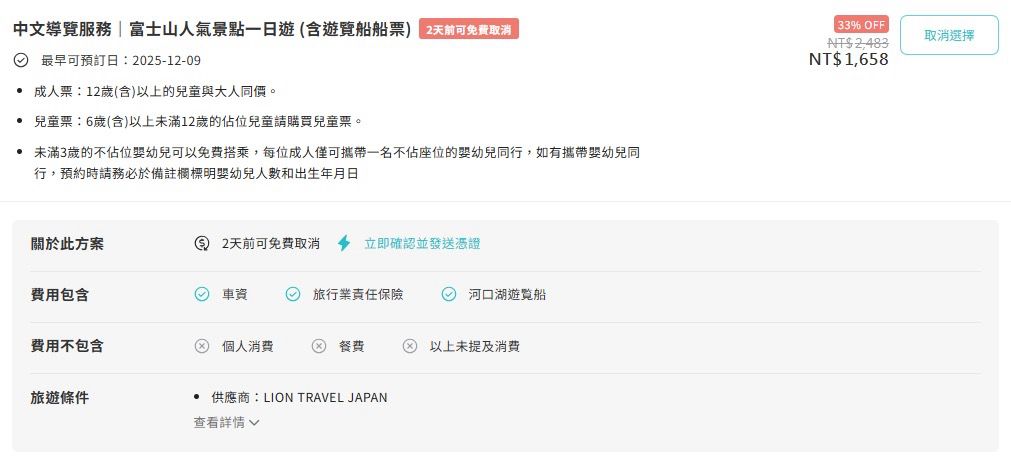 标题[徵人] [凑票]12/18 日本富士山人气景点一日游