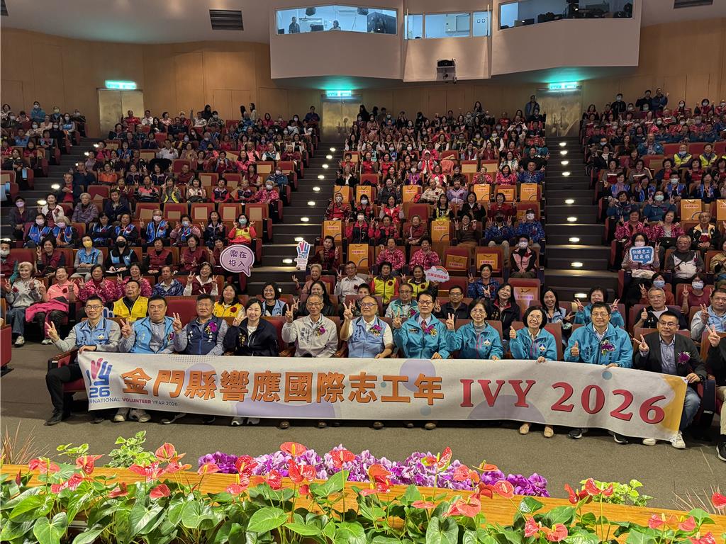 会人员一起呼喊「金门县响应国际志工年IVY2026」口号,并录影提供「台湾志愿服务国