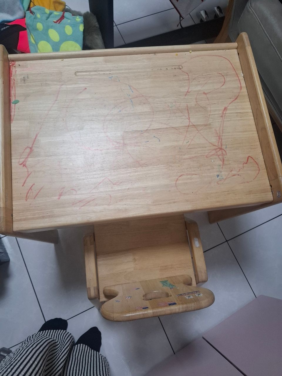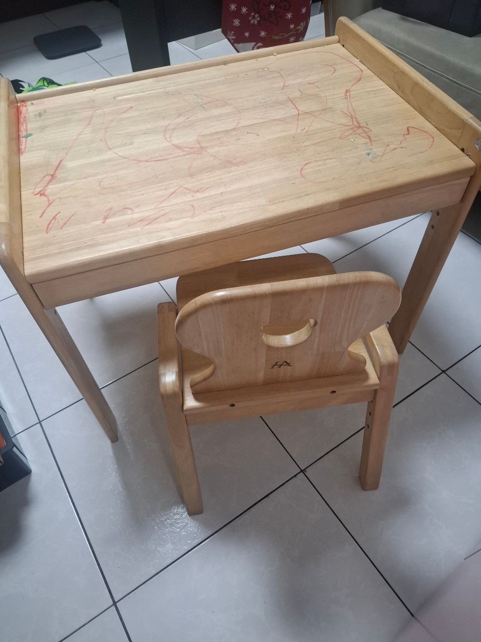 赠实木桌椅一组,桌面画得乱七八糟喔!