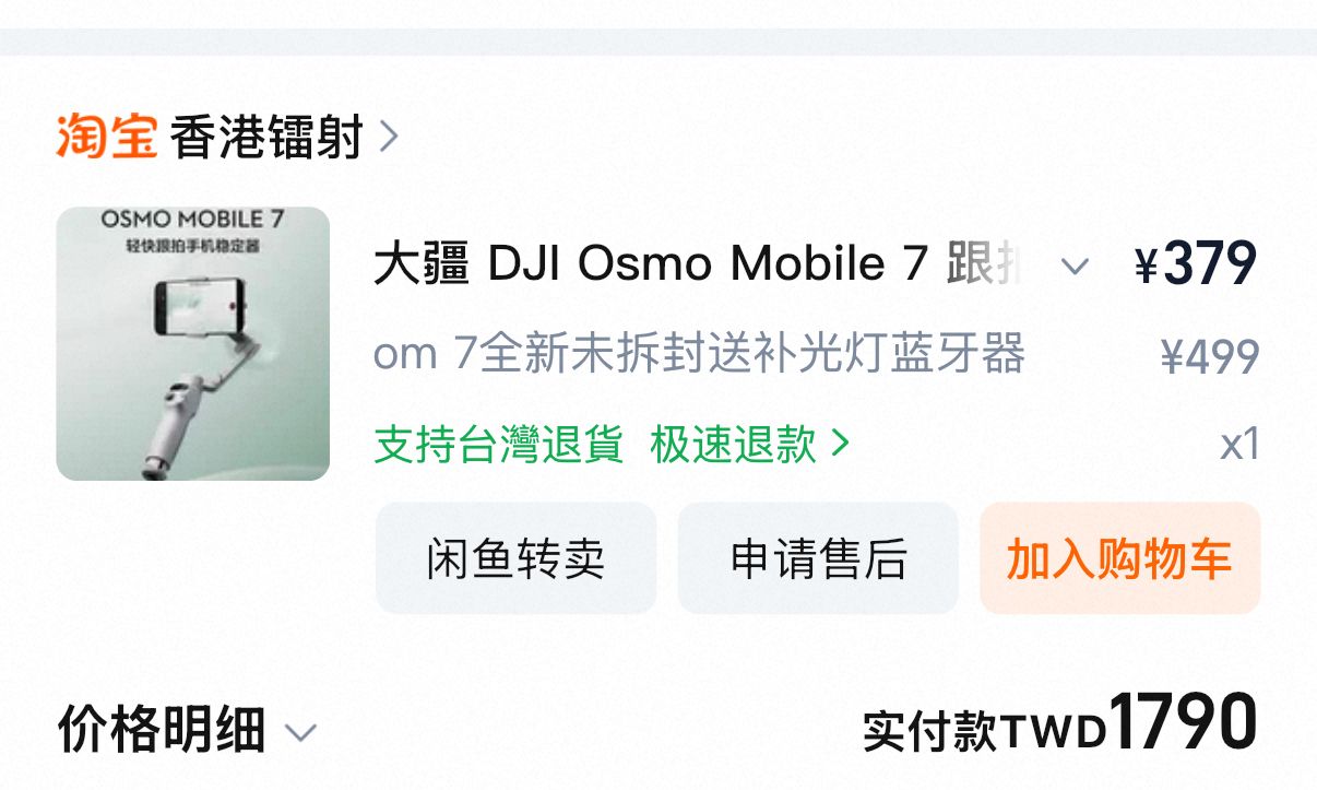 标题[交易] dji OSMO MOBILE 7手机稳定器