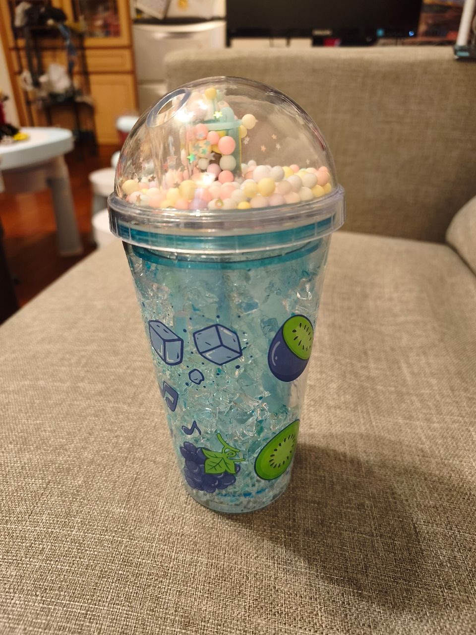 购於家乐福超市,杯子本体可放入冷冻库冷冻,冷却盛装的饮料。吸管不见了