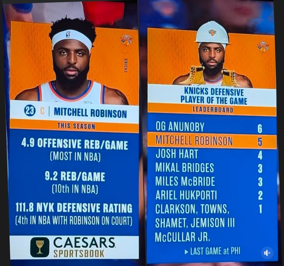 胜利。本场比赛尼克展现极强的进攻篮板执着,其中 Mitchell Robinson 与 Josh Hart