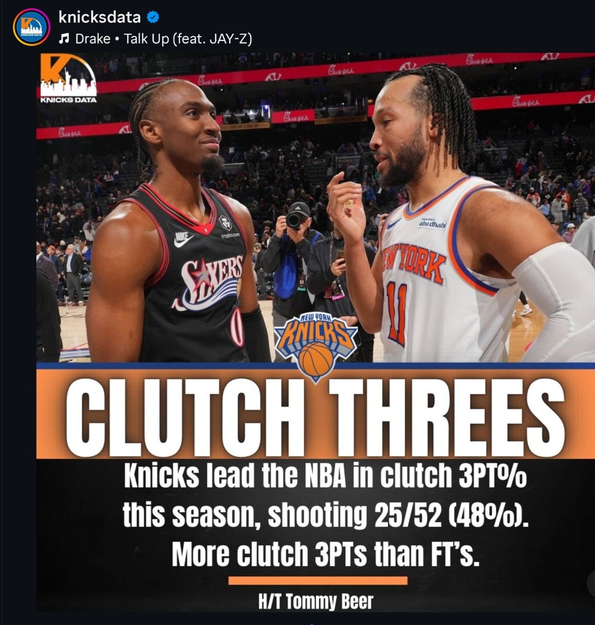 挺过 Embiid 38 分威胁,尼克惊险守住胜果,客场猎杀 76 人夺二连胜。