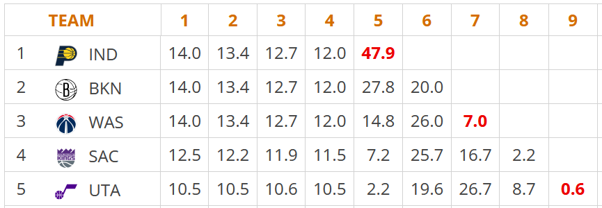 │ Inactive │Y. Niederhauser (Injury) │T. Haliburton (Injury) │