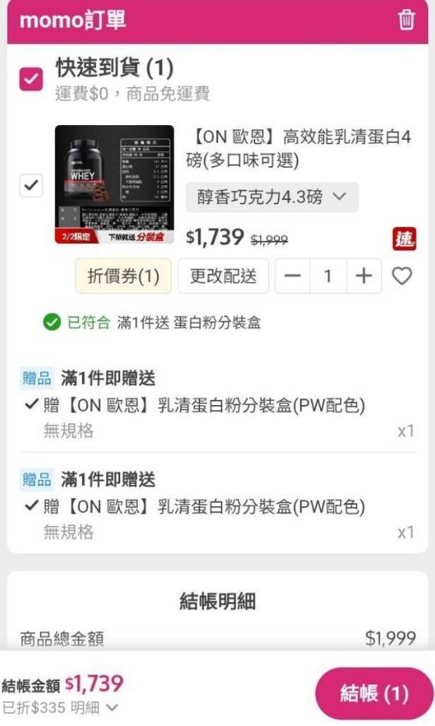标题Re: [情报] ON高蛋白momo单日优惠