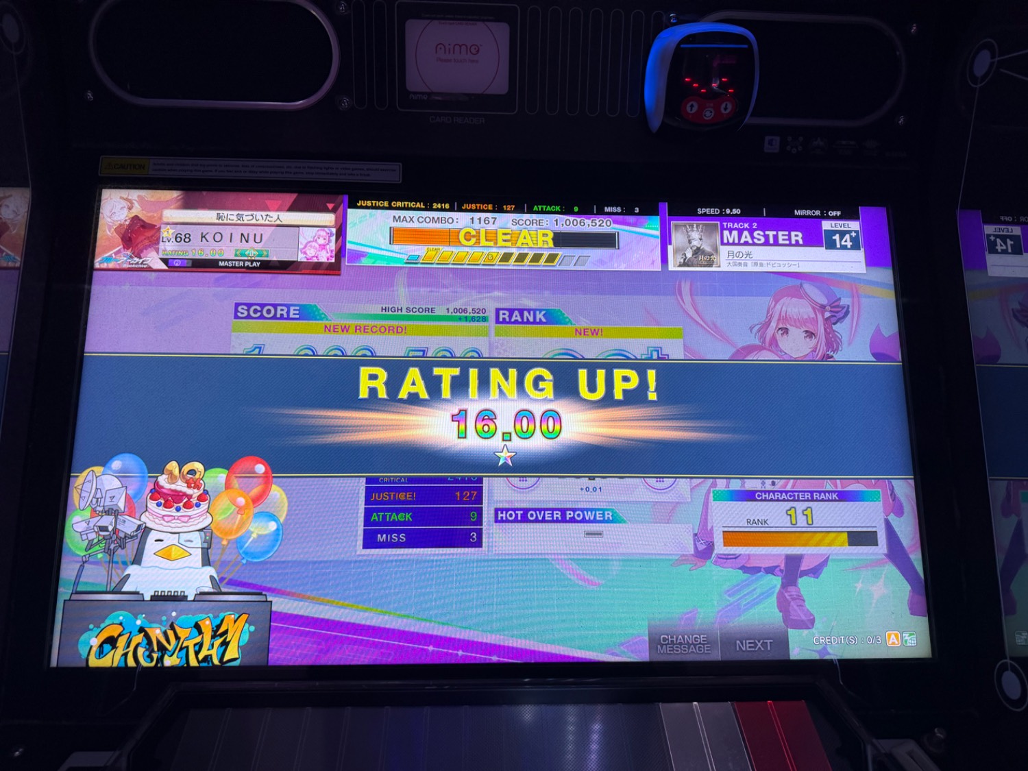 1433F:→ ybite : Rating随乐曲最高分上升 打到一个程度会变彩虹色 02/03 12:33