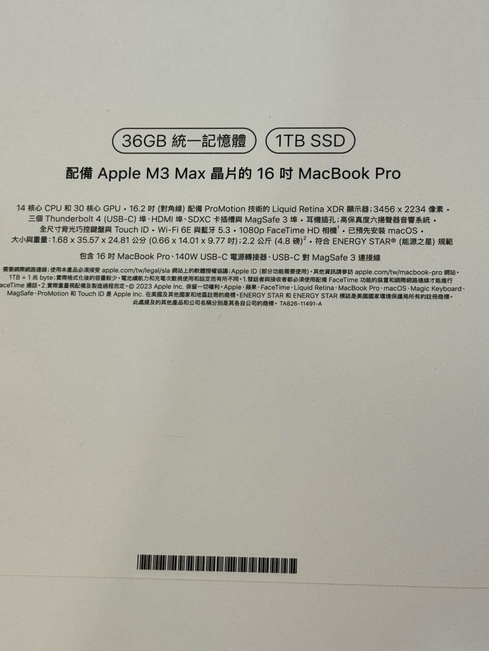 标题[贩售] 台北 全新 MacBook Pro M3 Max 16 太空黑