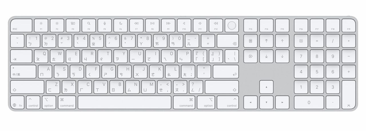 含 Touch ID 和数字键盘的巧控键盘(USB–C) - 中文 (注音) - 白色按键