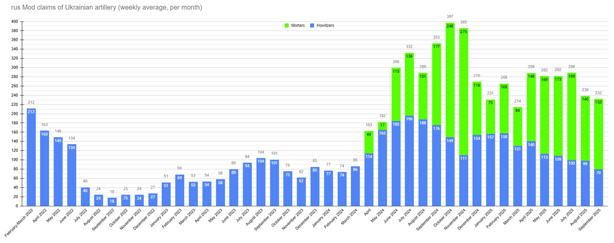 其中,俄军声称摧毁各型号放列火炮之数量如下