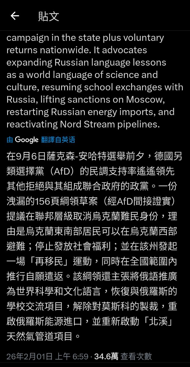 28F:推 andyken : AFD主席有说不会在军援乌克兰跟要乌克兰赔偿炸北溪 02/02 16:22