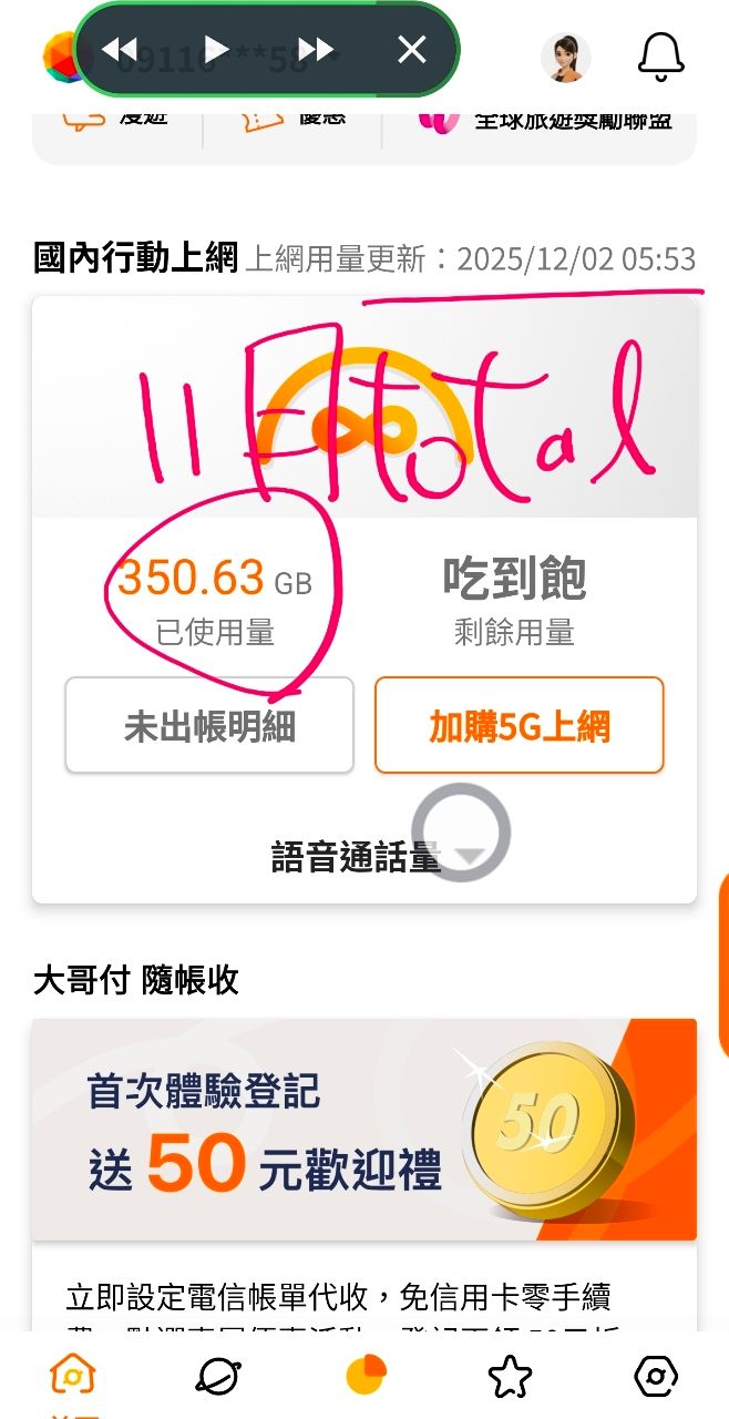 97F:→ wed1979 : 88,20加旋转门加配94,21/4G188约满1M,5G 299约满 12/02 14:32