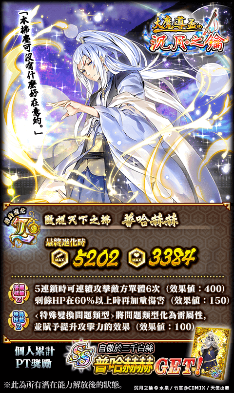 ●累积20000以上PT有机会获得限定SS级稀有卡牌
